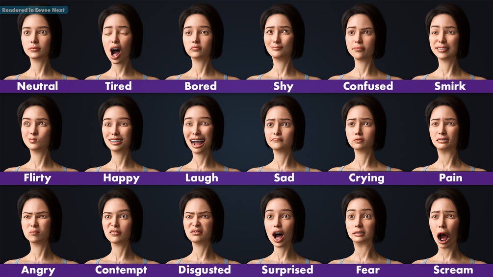 - Full-featured Facial Rig with phoneme support and modular expression controls