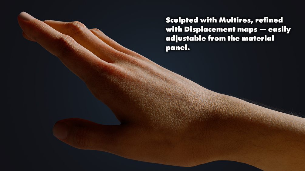 A fully rigged realistic arms crafted for high-end rendering in Blender's Cycles.