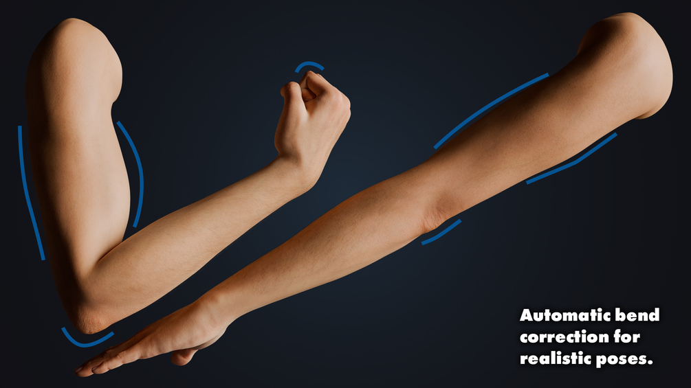 Fully rigged realistic arms crafted for high-end rendering in Blender's Cycles, with advanced customization options.